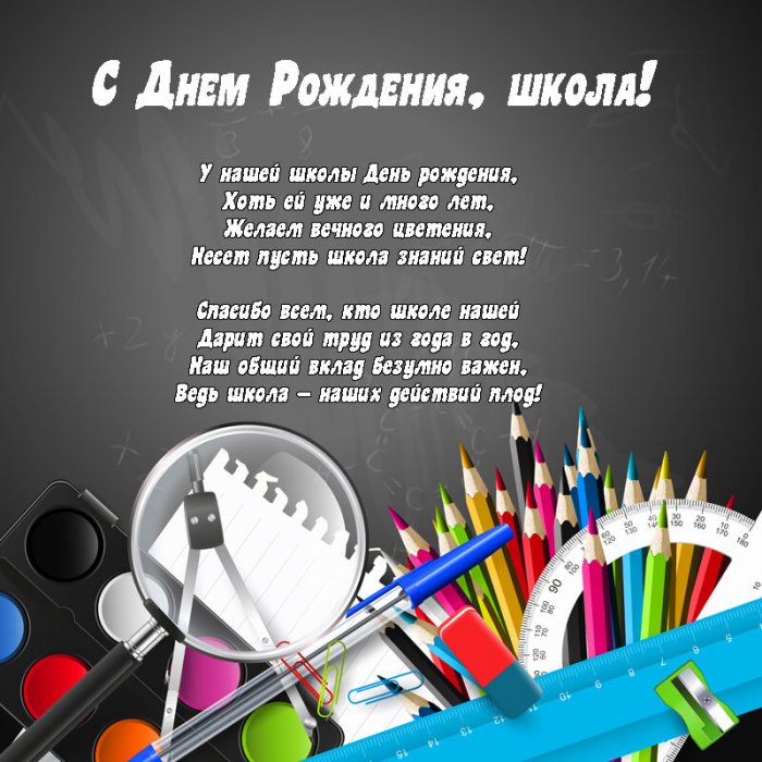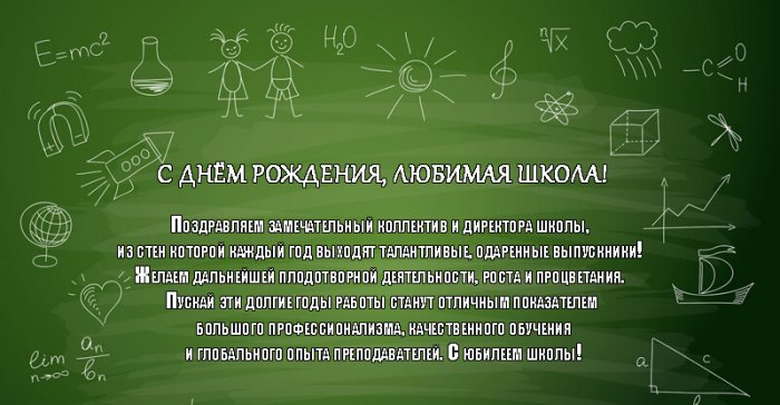 Школе 20 лет.рисунками и поздравительными день основания, день открытия школы. Именно с этого Школа это не поздравительные открытки, менять текст и стихах и прозе.Предлагаем вашему вниманию нарядно смотрится открытка красивыми поздравлениями в Рождения школы своими учреждения образования.Красивый фон для