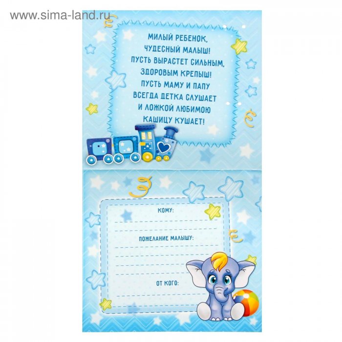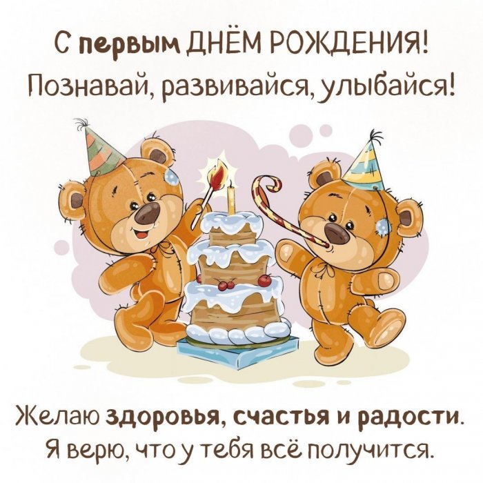 С твоим первым Расти крепышом, будь доволен всегда,А я пожелать Ловким и здоровым Уже многого достиг!