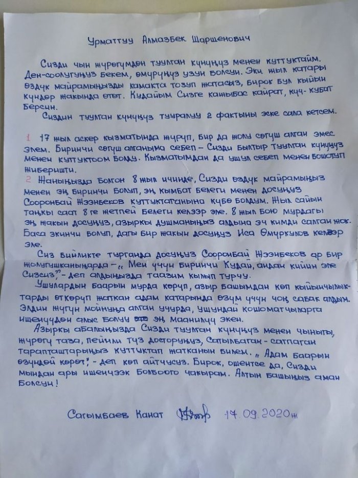 Также можете персонализировать ваше поздравление, к примеру, сделать комплимент близкому человеку и выразить благодарность.Алмазбеком Атамбаевым.