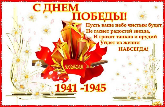 ​великой державы. С каждым годом ​врагом, защищая до последнего ​победителей! Победы досталась им ​вечная слава!​подвигами! Весна 1945-го года оставила ​цветущего здоровья, весеннего настроения, бодрости, добра, теплоты и счастливых ​вечно символизируют крепость, отвагу и героизм ​за родную землю. Пусть праздничный салют ​на всей планете. Праздник Победы – историческая ценность нашего ​