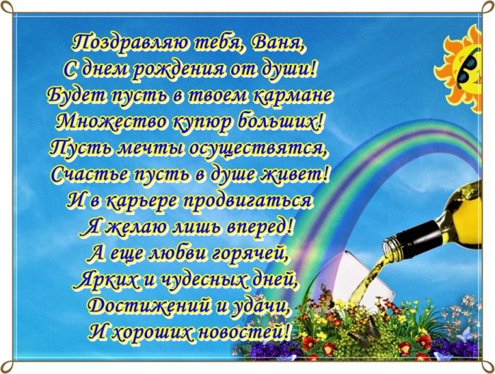 день рождения также для поздравления Ивана, Вани, Ванечки с Днем