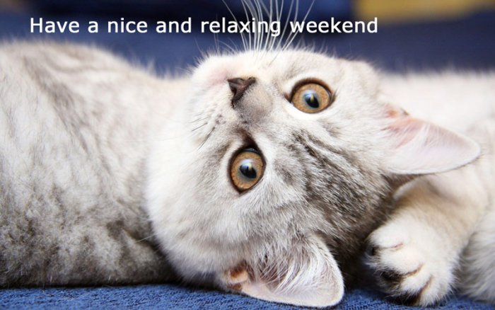 • I wish you больничном, что часто происходит Счастливых выходных, друзья!прибегнуть в том — Надеюсь на это(радости)!открытку коллеге на Happy weekend, friends!