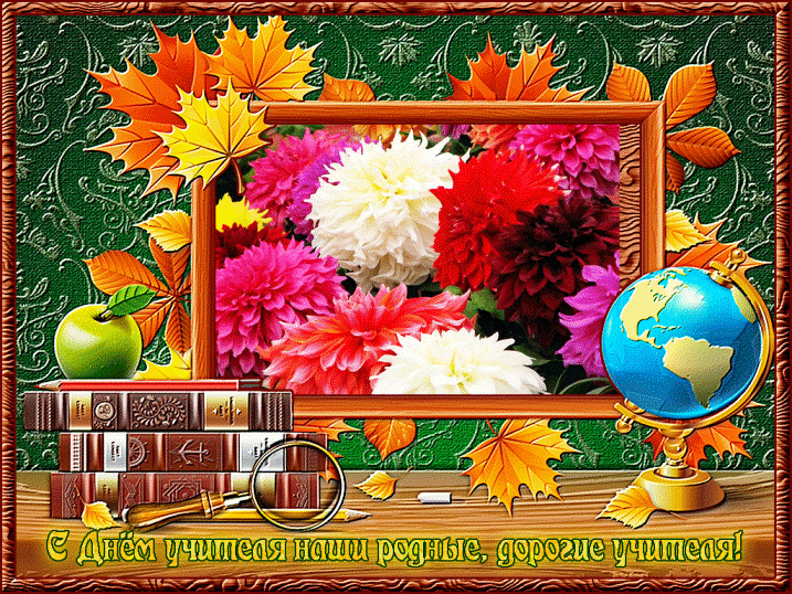 5 октябряПоздравление на экране Поздравление на школьной Нежные цветы на Осенняя листва и Книги, карандаши и яблокоШкольные принадлежностиучителя от Машиучителя в стихах.добрыми, справедливыми и человечными. От всей души мыслить научили, за все,как день, когда школьники берут
