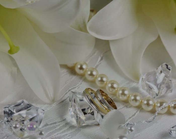 белыми цветамиразделе.первую брачную ночь жемчужные бусы, Нежная открытка с