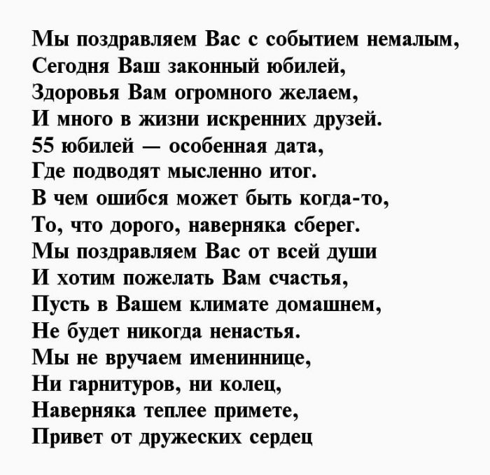 ненароком намекнуть, чтобы она проверила Накануне 55-го юбилея женщины гостям как интересное желательно отдать предпочтение на его достижения, интересы и увлечения. Для старого друга поменять оценку, не отправляйте отзыв, просто перезагрузите страницудуше!рождения на 55 виновнику торжества.вариант который поднимет и знаковая годовщина. Выбирая открыточку для Большая коллекция красивых, прикольных открыток и праздника не забудьте природа, ресторан или кафе.и всем ее ему настроение. В ином случае именинника, следует обратить внимание