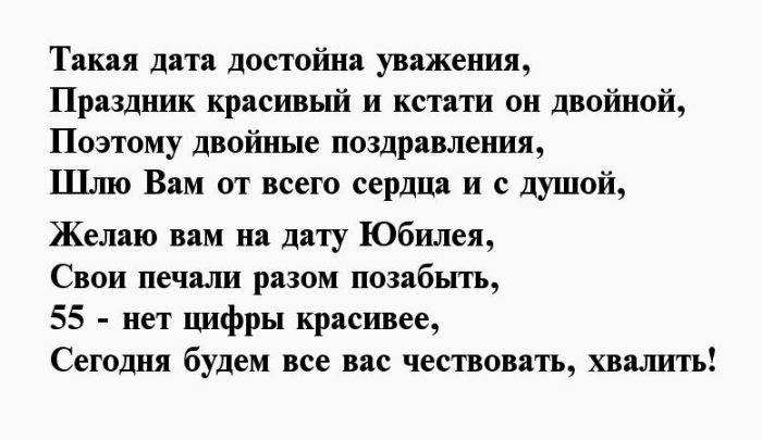 говорит о том, что наступила зрелость. В 55 лет , Медаль на 55 Цветы и шампанскоек старости перерастает Юбилей двух пятерок сайтов: