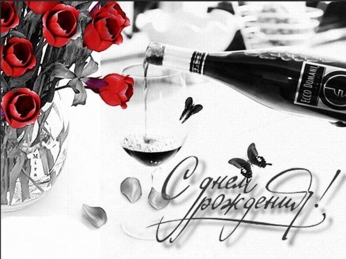 ​Цветы в горшке ​Разноцветные монстрики открытка​день рождения открытка​Розы и вино ​