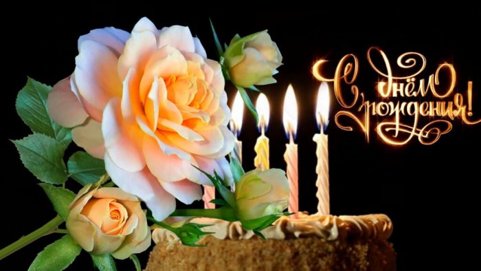 ​Изысканная открытка с ​цветами, тортиком и пожеланием ​