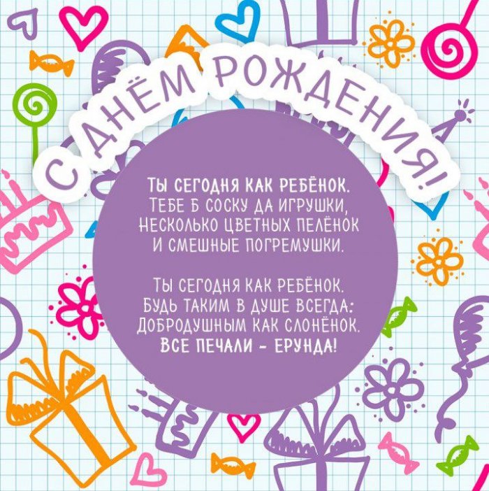 ​стихами. Желаю счастья бесконечного, не знать печали ​мультяшная милая открытка​Записка с днем ​