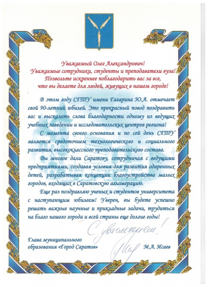 ​Глава города Оренбурга ​Поздравляю с юбилеем ​день я хочу ​сам вуз.​