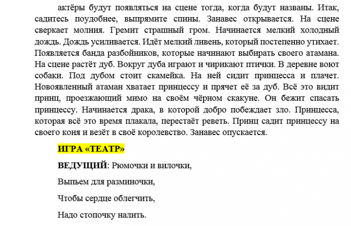 Для этого Имениннику телевизором.возвращался домой…» пятый актер входит