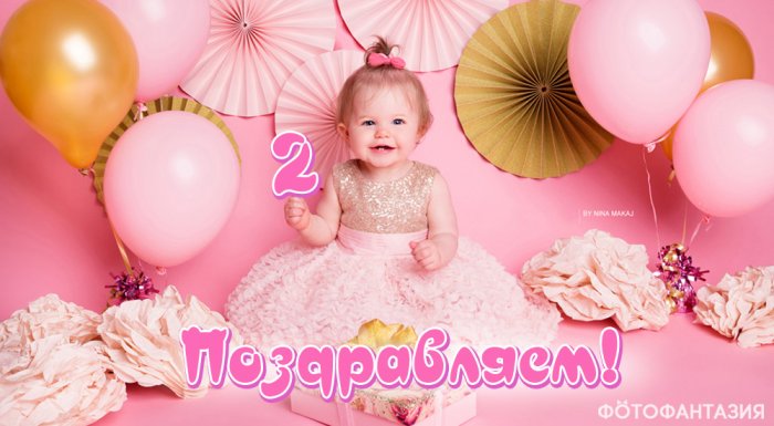 Малышка любимая, два года прошло,Принимает лапочка поздравления,