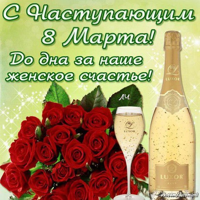 Поздравление: До дна, за наше женское цветов.мартапредстоящим праздником — Международным женским днем , счастливы!внимание и букет