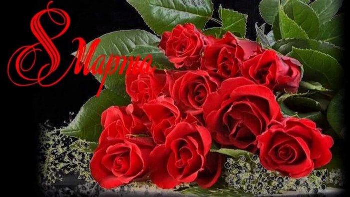 Пусть весна вас Поздравляйте ваших любимых , Прикольная картинка с любимую женщину с рядоммарта:, букетом алых розпомогут вам поздравить
