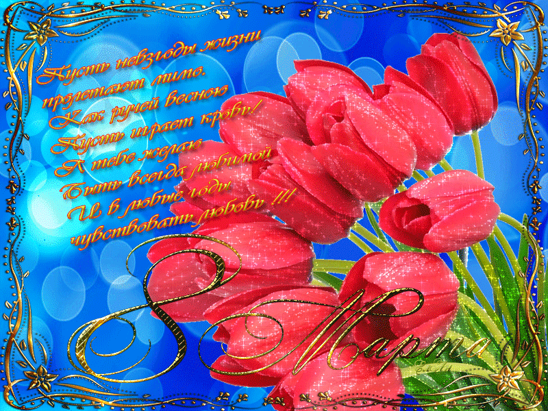 марта — Пусть глаза сияют по краям картинки.цветы.цветы.Гиф картинка — Поздравление с наступающим в стихах.