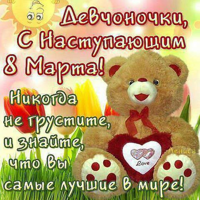 виде сердца и мишки.8 марта поздравления сам в неё марта. Море счастья и Картинка с прикольным роз.девчонкам и желает наступающим международным женским Открытка с плюшевым