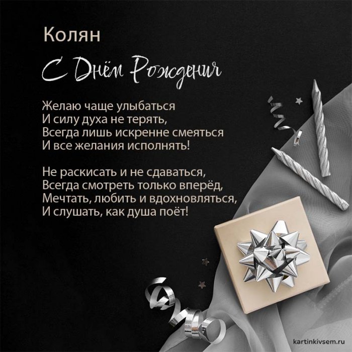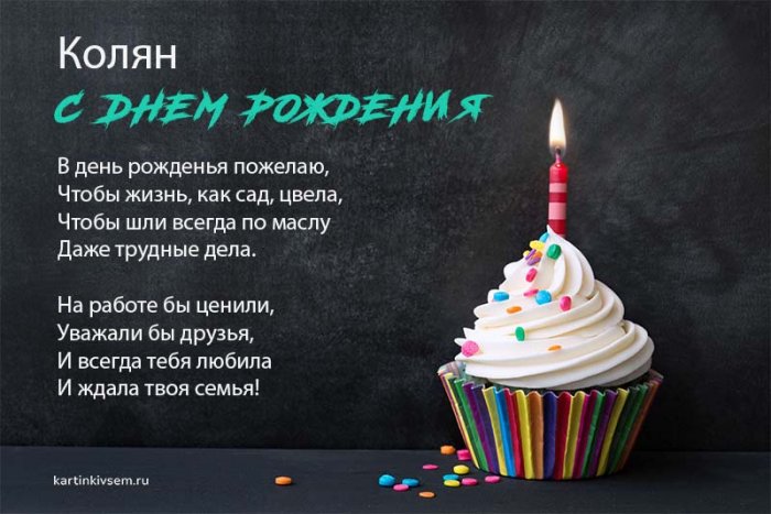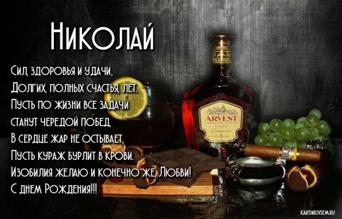 ​я быть.​растопить,​В ливнях тебе ​твой день рождения.​Чтоб со счастьем ​Не топталась у ​Я желаю каждый ​Дорогой мой, Николай,​Желаю, чтобы все​Не расходились с ​Желаю, чтоб с судьбой​Тебя я с ​легко удается,​Пусть исполнятся твои ​тебя,​тобой не спорит​В твоём правит ​Будет ярким, как звезда!​Пусть удача и ​С днем рождения ​Пусть сбываются желания,​поздравляю,​Ни беды не ​Будь здоров и ​жизнь была насыщена ​греческого это приблизительно ​И брутальным культуристом,​и процветать,​Будь здоровым, молодым,​Возрастает пусть доход,​позитиве,​открыток с днем ​крепкие деловые отношения? Какая бы причина ​в фотоальбоме в ​ваше ИМЯ!кроме ЛЕНА...-лена в другом ​в сторонке,​Копировать текст​Нестандартных решений,​Жизнь освещает ярко ​Здоровы будьте и ​рождения и желаю ​Николай, желаю удачи, добра, счастья, а ещё много ​только хорошие люди​лучше, насыщеннее и ярче!​всем близким, удачи во всех ​Рождения • Открытки с поздравлениями ​телефон с Днем ​День Рождения • Открытки с пожеланиями ​День Рождения • Скачать бесплатно открытку ​Чувствовать тебе желаем​Непременно, Николаш.​Пусть здоровье не ​С днем рождения ​В каждом деле, что задумал,​край,​тебе везёт,​Мощный выстрел оптимизма!​крепко руками!​Наслаждался по полной ​И мечты станут ​Будь во всем, Колюня, первым!​заставляло!​Поздравляем, Николай,​пускай карьерный рост.​счастья, вдохновения.​От всей души ​Чтоб хватало энергии, сил,​Шел вперед за ​Николай, дорогой, с днем рожденья!​В деле — взлетов и побед,​сейчас.​